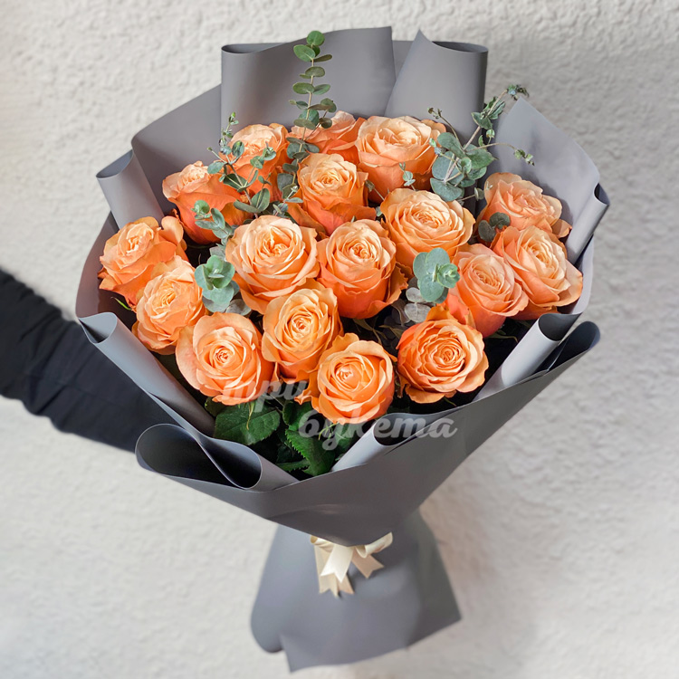 17 персиковых роз на 14 февраля