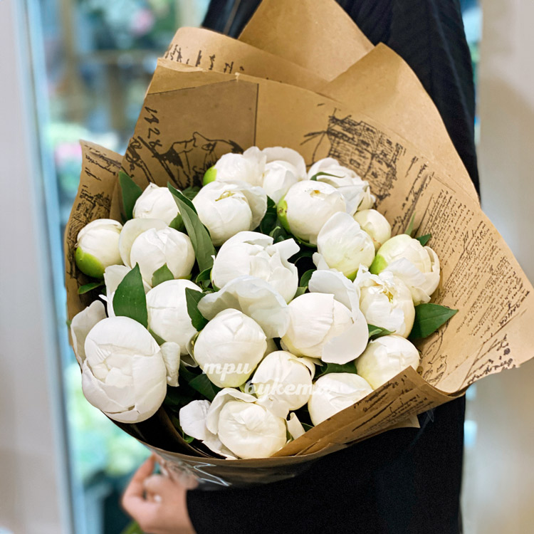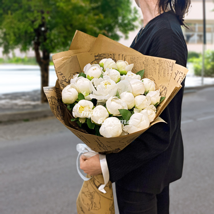 23 белых пиона Дюшес в крафте