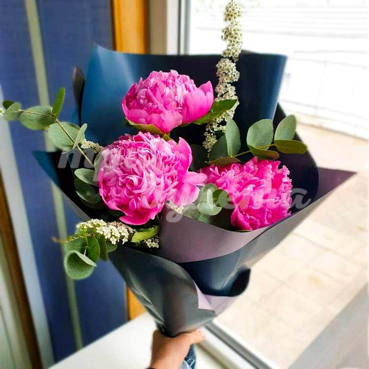 3 розовых пиона Сара Бернар