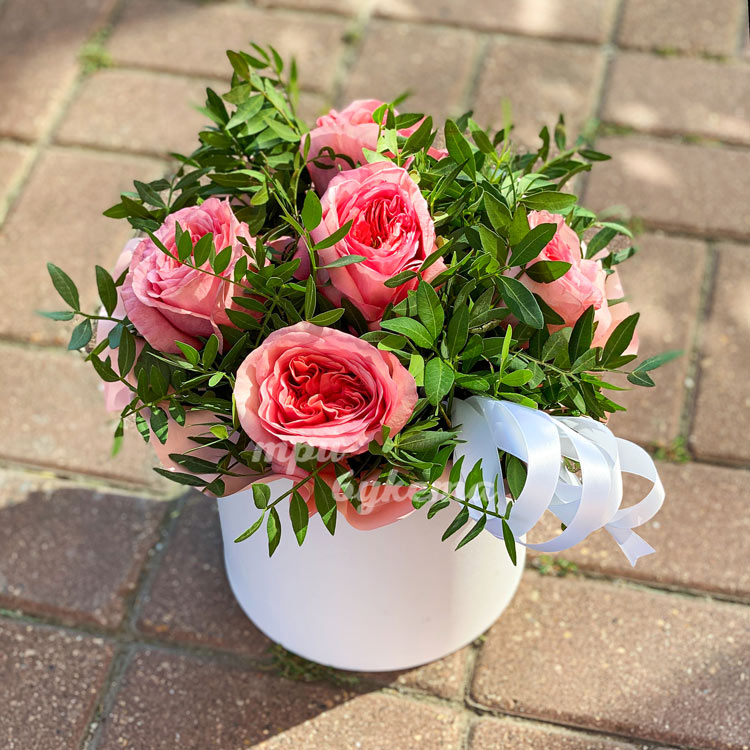 5 пионовидных роз в коробке