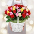 51 розовая роза в корзине