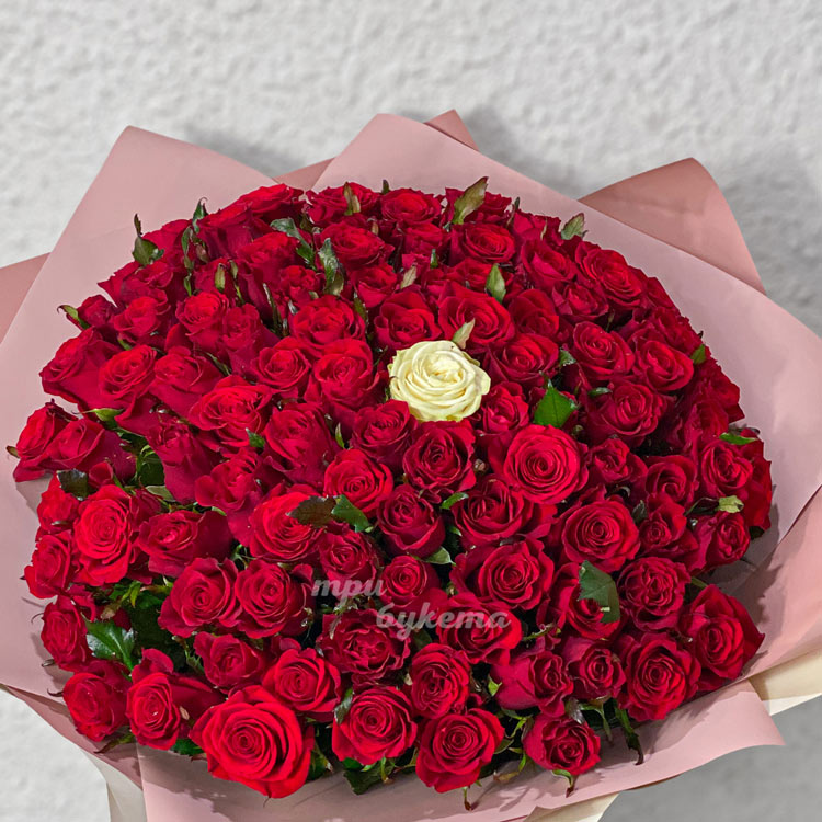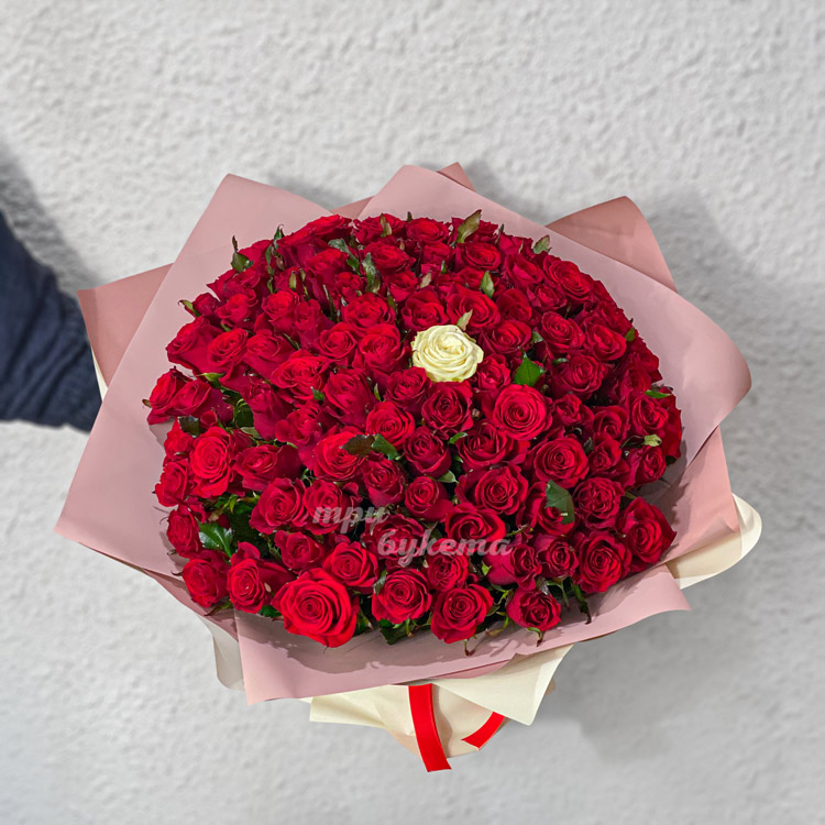 Букет из 100 красных и 1 белой розы
