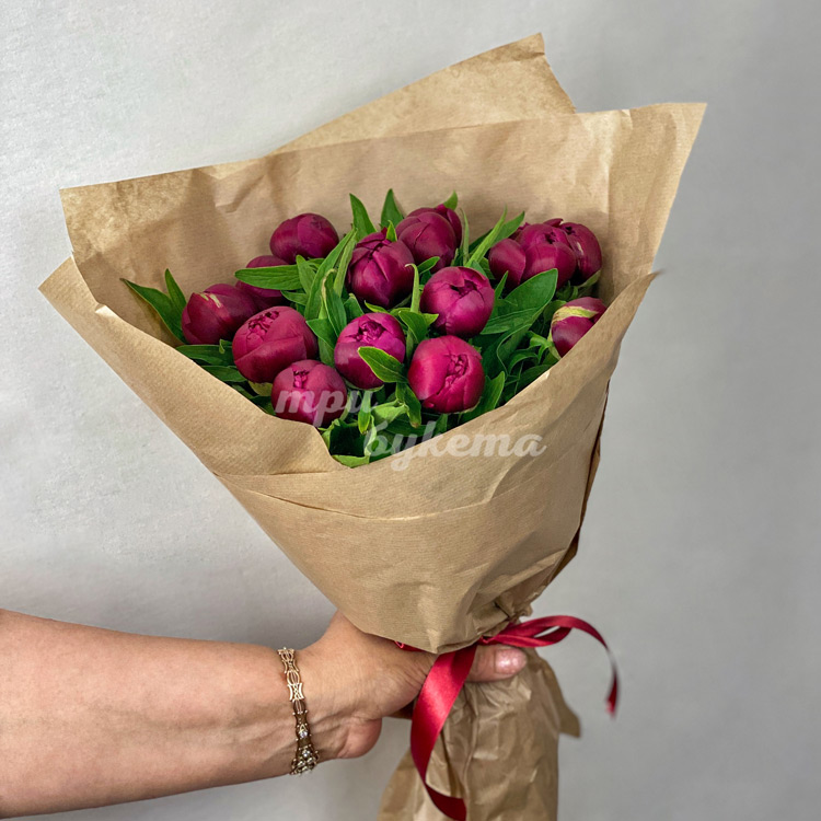 Букет из 15 пионов Ред Шарм