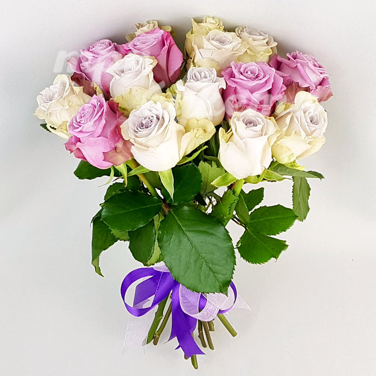Букет из 15 розовых и кремовых роз