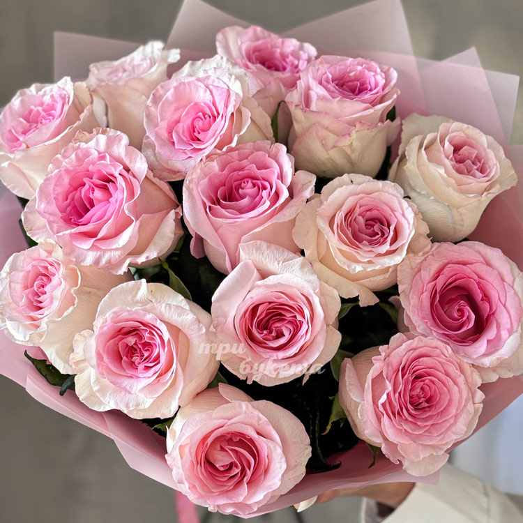 Букет из 15 розовых пионовидных роз