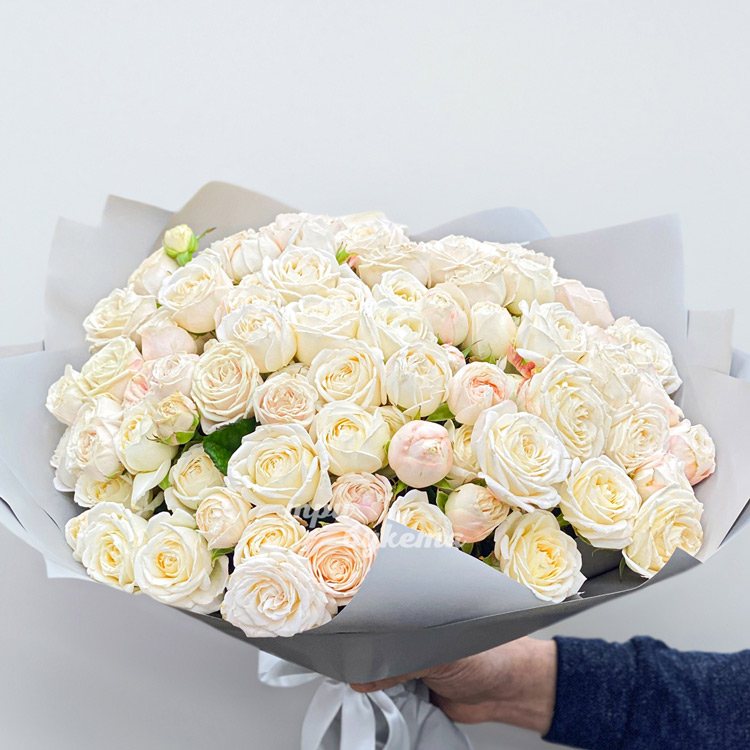 Букет из 45 кремовых кустовых роз