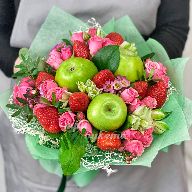 Букет из роз, яблок и клубники