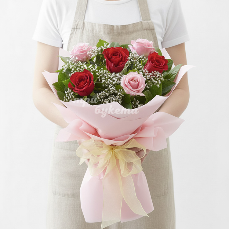 - Розовые розы, 3 шт.