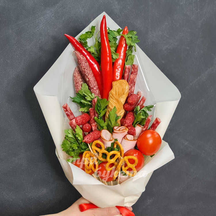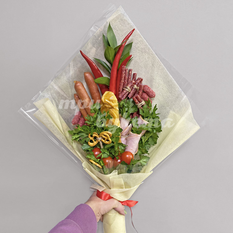 Букет из сыра и охотничьих колбасок