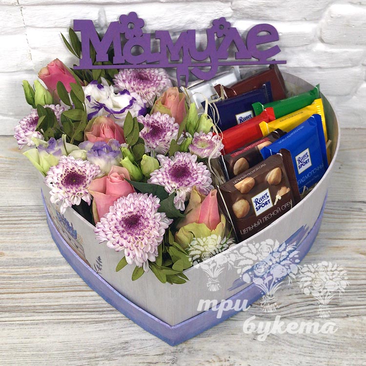 Цветы и шоколад в коробке