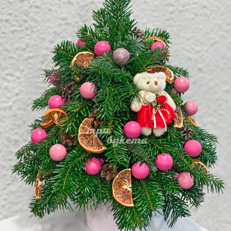 Елочка настольная с розовыми шарами
