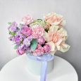 Голубые гортензии с белыми розами в коробке