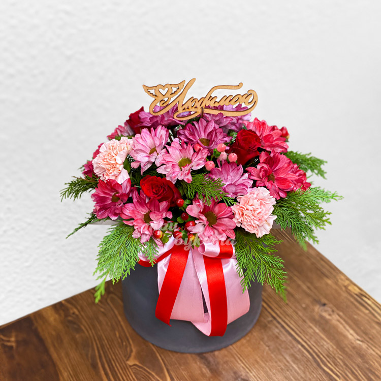 Коробка хризантем и гвоздик для любимой