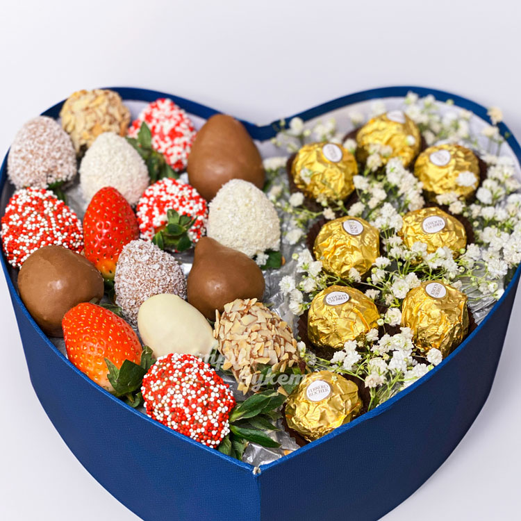Коробка-сердце с клубникой и конфетами