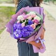 Корзина белых ромашек, хризантем и роз