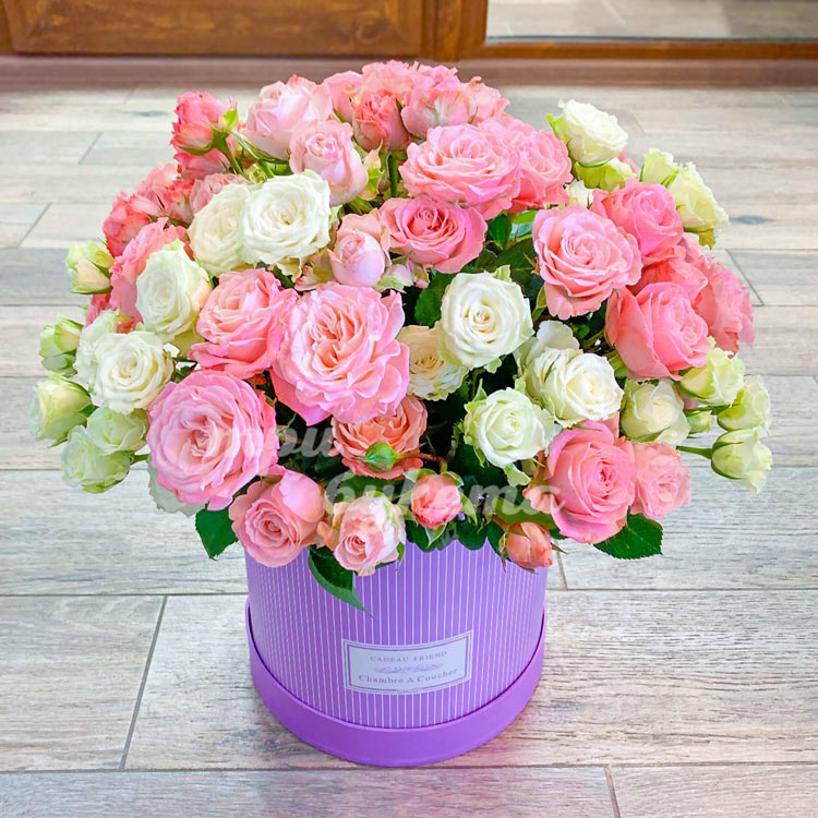 Кустовые розы в коробке