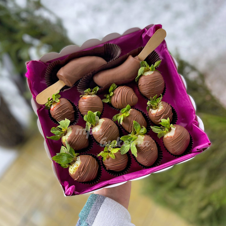 Набор клубники и бананов в шоколаде