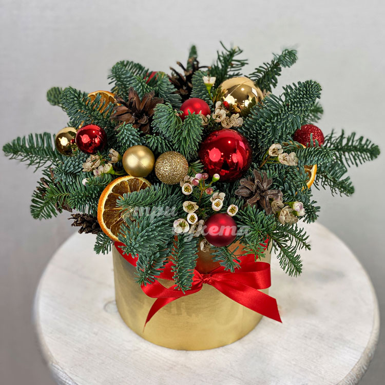 Новогодние шарики в золотой коробке