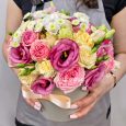 Орхидея Ванда с эустомами в коробке