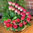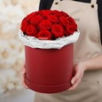 Пионы, розы и эустомы в коробке