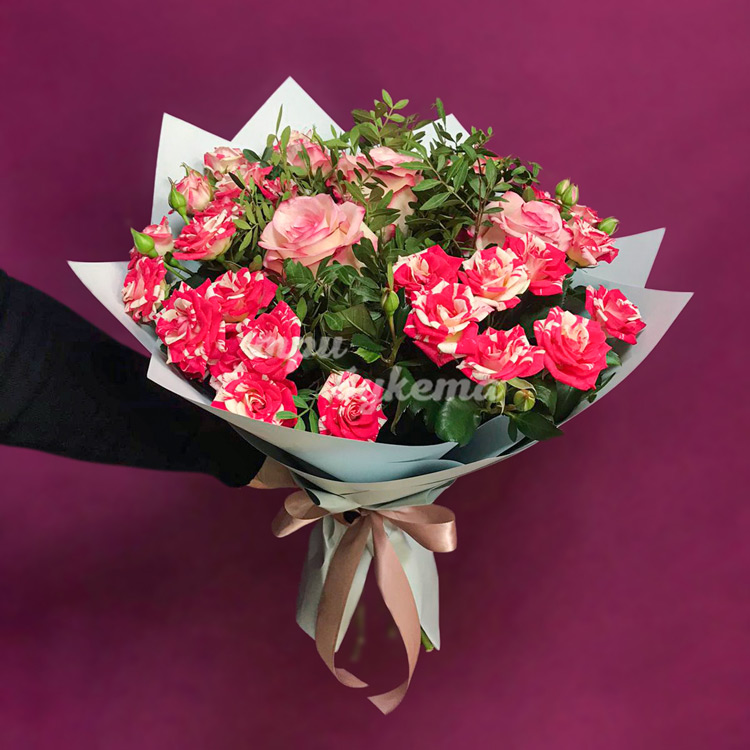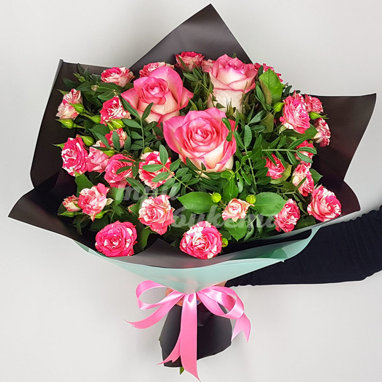 - Розовые кустовые розы, 6 шт.