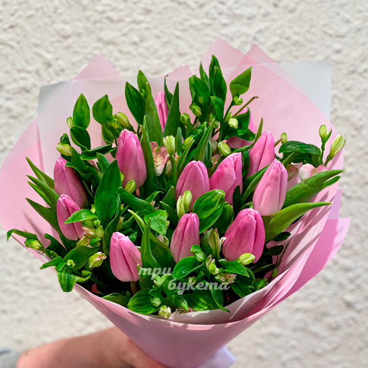 Розовый букет тюльпанов и альстромерий
