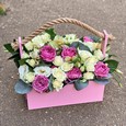 Розы и гвоздика в ящичке