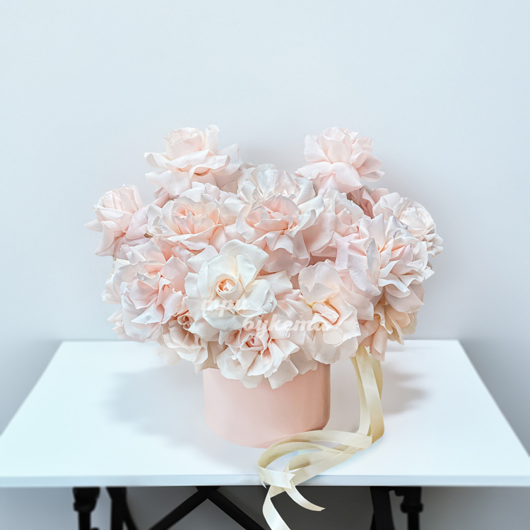Шляпная коробка кремовых французских роз