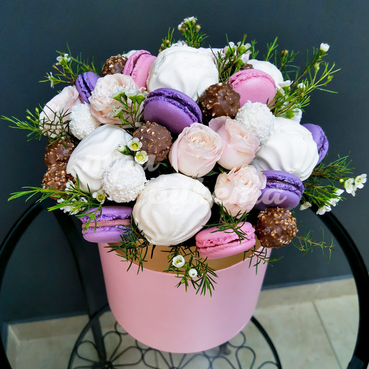 Зефир и макаруны в шляпной коробке