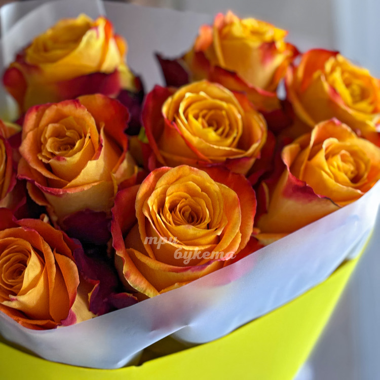 Желтый букет из 9 оранжевых роз